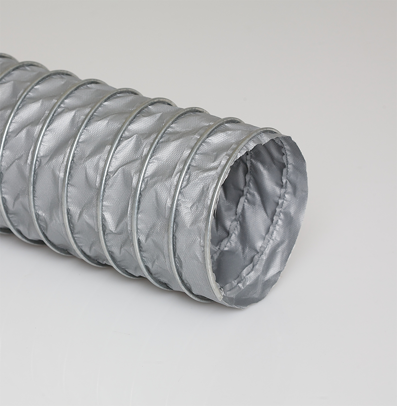 Tuyau en tissu de fibre de verre monocouche enduit de silicone argenté, serti mécaniquement dans un processus continu.