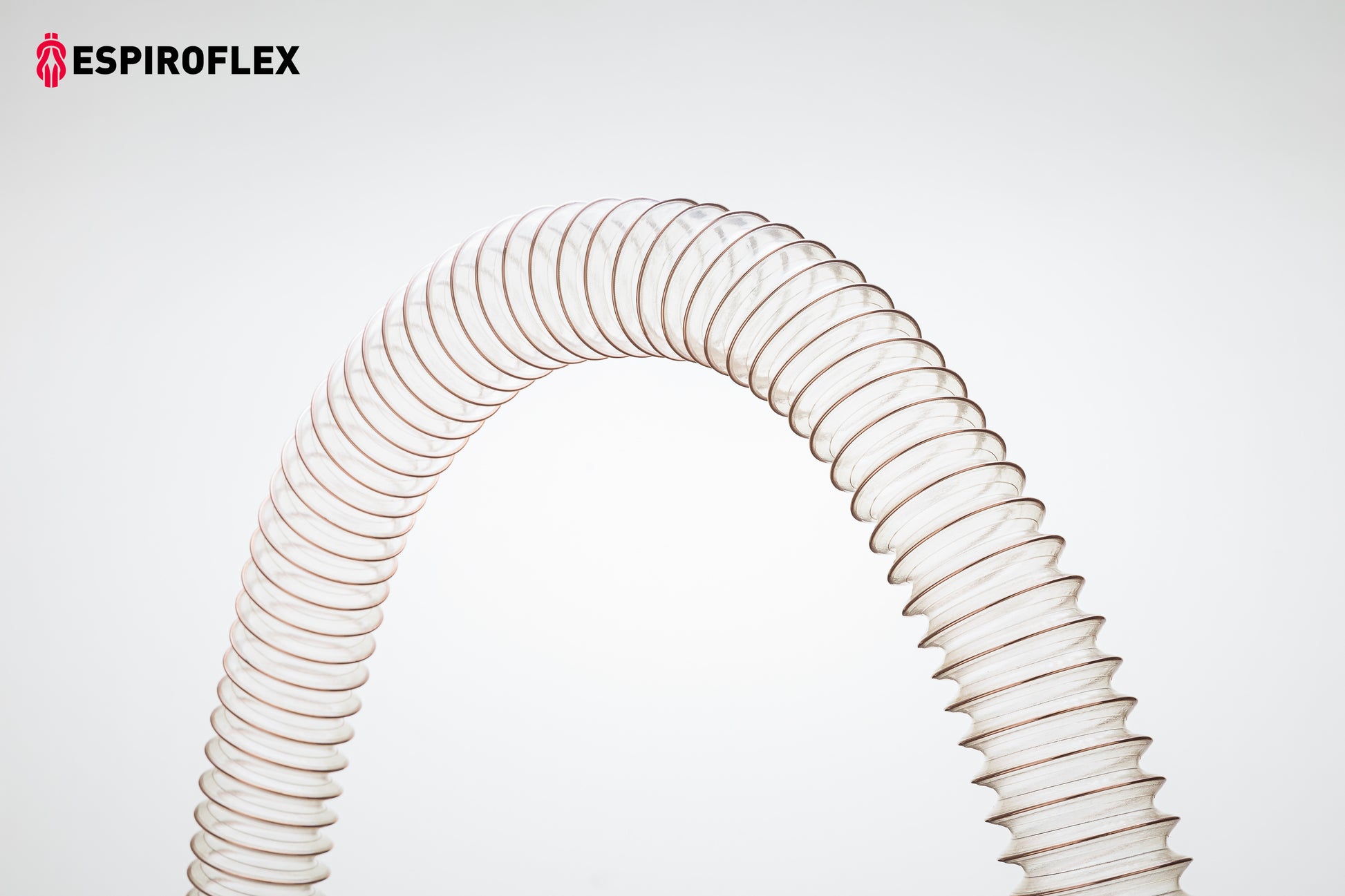 • Tuyau fabriqué en polyuréthane flexible et transparent, à base de polyester et avec une spire interne d'acier zingué à caractère antistatique pour l'aspiration de produits avec abrasion.