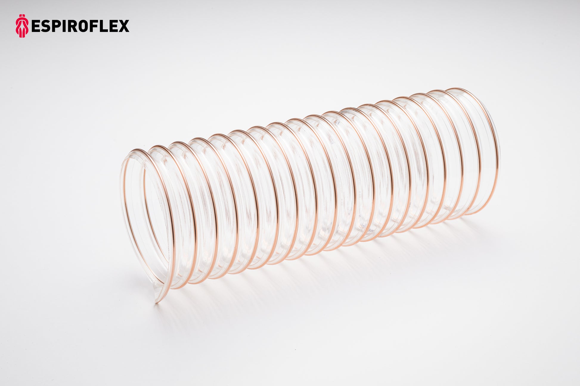 • Tuyau fabriqué en polyuréthane flexible et transparent, à base de polyester et avec une spire interne d'acier zingué à caractère antistatique pour l'aspiration de produits avec abrasion.