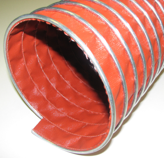 Conduit flexible pour hautes températures, fabriqué à partir d’un tissu de fibre de verre imprégné de caoutchouc silicone.Le conduit est renforcé par une hélice externe galvanisée (avec option d’hélice en acier inoxydable). Ce produit se distingue par son poids léger, sa résistance à l’eau et à l’huile, ses propriétés retardatrices de flamme et sa faible émission de fumée.
