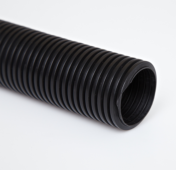 Tuyau en copolymère conducteur en polyéthylène noir léger renforcé par une hélice en polyéthylène intégrée.