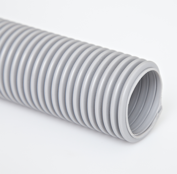 Tuyau en copolymère de polyéthylène gris léger renforcé d'une hélice en polyéthylène intégrée.